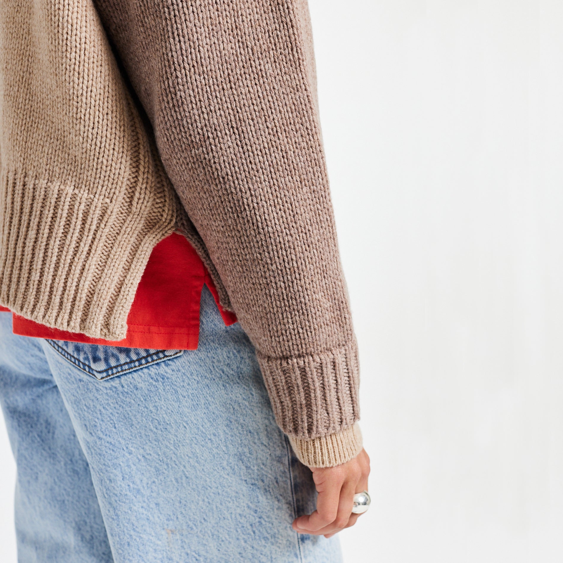 ↳Laver une maille au-dessus de 30°C risque de feutrer le produit. Un essorage trop fort risque également de feutrer et rétrécir le pull.
