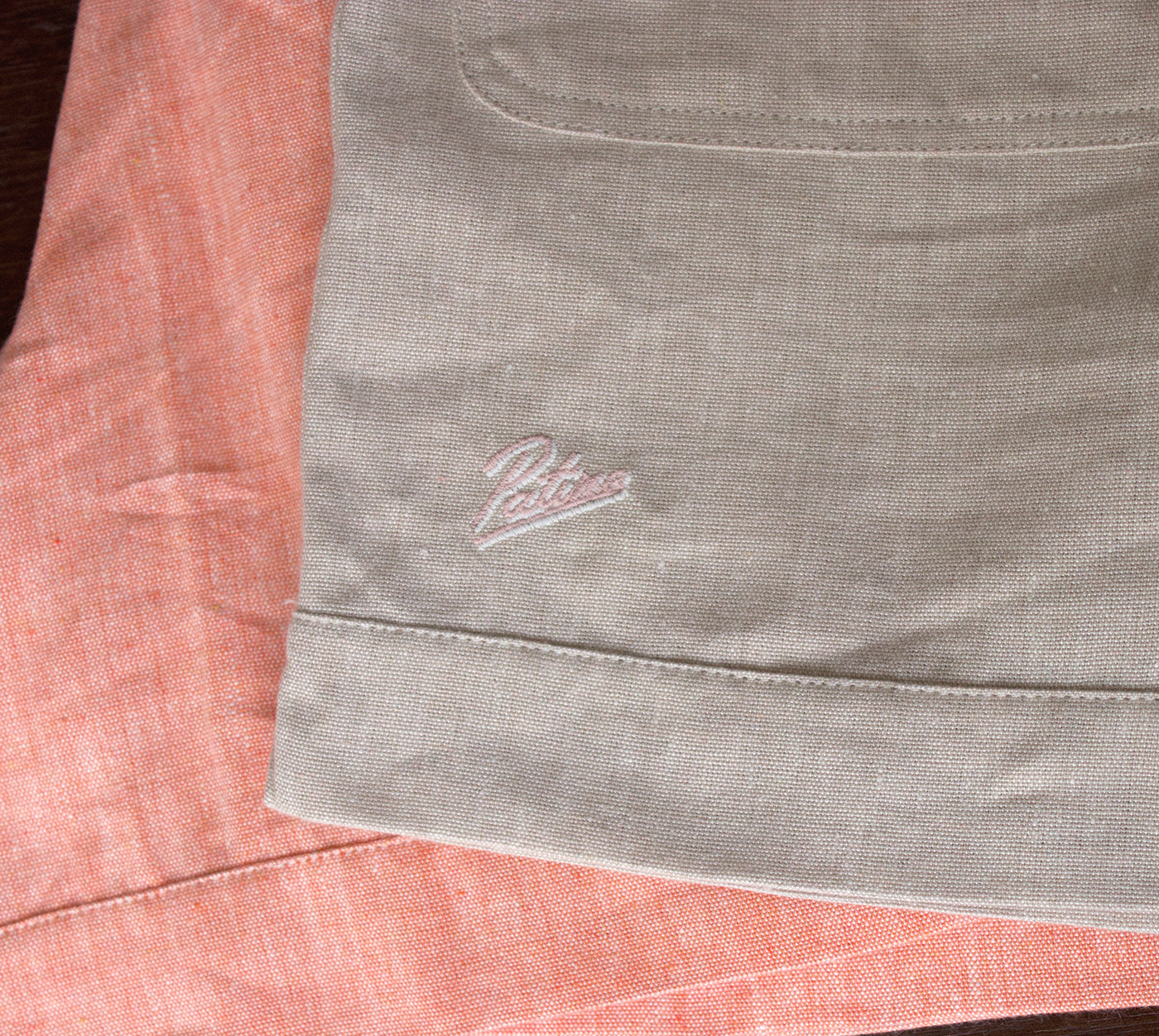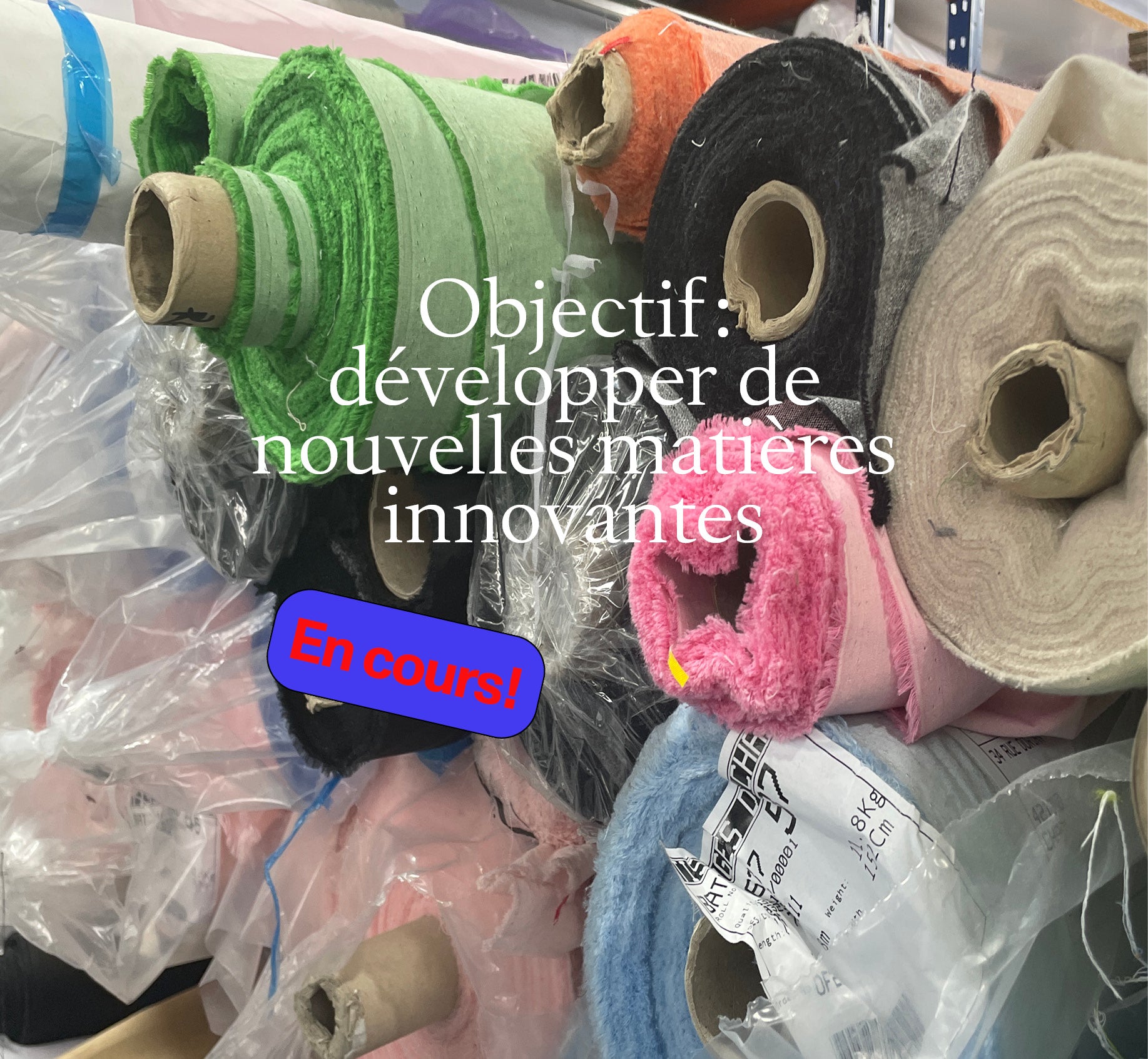 Le 15 octobre 2020, on a découvert une archive d'échantillons de tissu composé de lin et fil recyclé absolument génial. On s'est tout de suite mis au travail dans l'espoir de sortir pour l'été 21 un ensemble 2 pièces. On a tissé des métrages pour pouvoir prototyper nos pièces et mener en parallèle des tests durabilité en laboratoire. Malgré le confinement du printemps, on a pu avancer sur le modélisme, les prototypes, les couleurs, le sourcing des boutons... L'idée était de tisser notre tissu d'avance et de lancer une précommande courte, le temps de la confection des vêtements commandés. On allait commencer à vous en parler quand...catastrophe, avec la chaleur, le lin s'est mis à coller au métier à tisser. Impossible de fabriquer le tissu. Retour à la case départ. Très frustrant évidemment à notre taille d'équipe : quand on développe un projet, on n'en n'a pas d'autre sous le coude si celui-ci échoue, et rien à sortir à la place. Évidemment le projet n'est pas abandonné.
