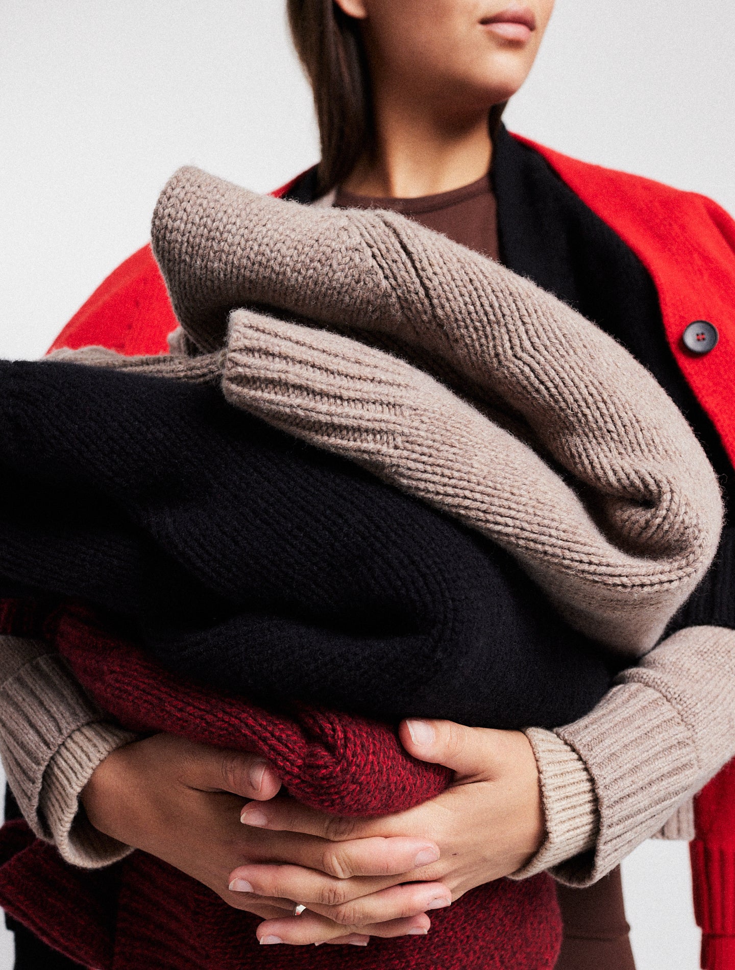 Le recyclage des pulls et la fabrication du nouveau fil sont effectués en Italie. Nos pulls sont ensuite tricotés en Italie.
