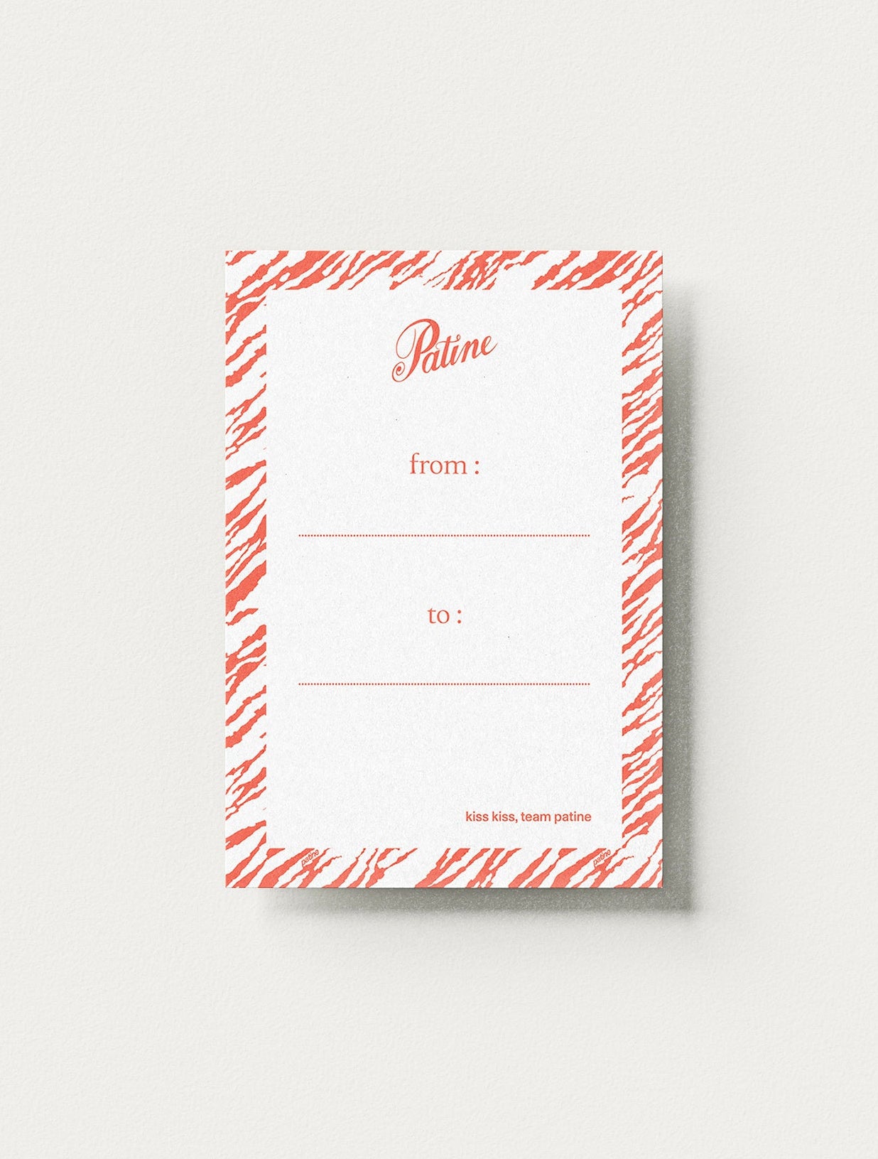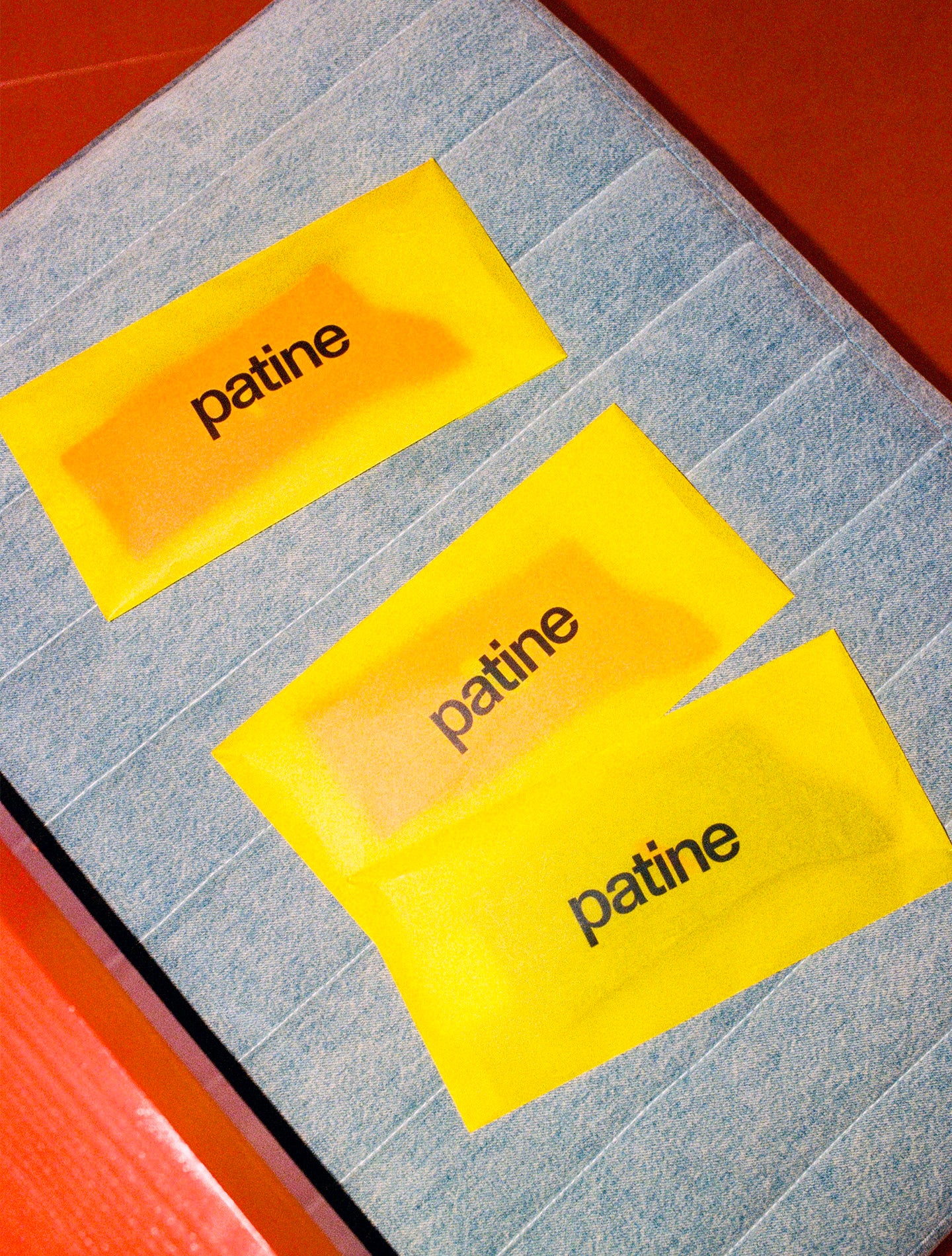On glissera dans votre colis une pochette recyclée, un sticker Patine et une petite carte à joindre dans votre paquet.