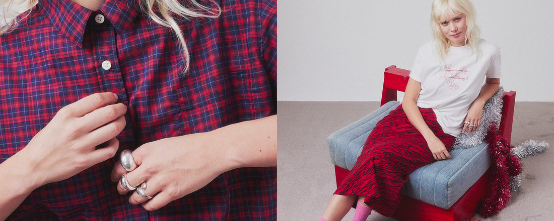 Chaque année, Patine repousse un peu plus loin les limites pour vous proposer des éditions limitées fantastiques tout en restant droites dans nos bottes (fourrées). Liste non exhaustive : jupes de princesses qui brillent et chemises tartan taillées dans des tissus issus de stocks dormants , bijoux rouge tomato, sacs argentés, chaussettes mercerisées, graphics tees à reporter... Sorry, no Labubus...dans la limite des stocks disponibles.