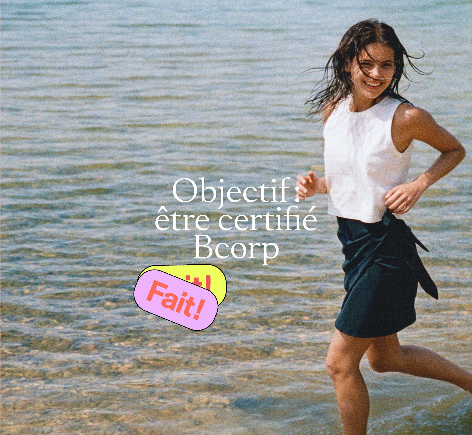 BCorp is the most well-known and trusted label worldwide awarded to companies that meet demanding environmental and social impact criteria. To assess compliance with these criteria, B Lab, the independent association which created the B Corp label, has developed a questionnaire of more than 200 questions divided into 5 categories (environment, employees, community, governance, customer ·es) for which you must obtain a score of more than 80 points to be officially certified. It is a tedious process which requires providing precise information and figures, both on the carbon impact of each garment and on the volumes of water used or the working conditions at our production partners. This certification would therefore not have been possible without the rigorous work of Maïa and Lucie who started the process at the beginning of 2021: thank you <3