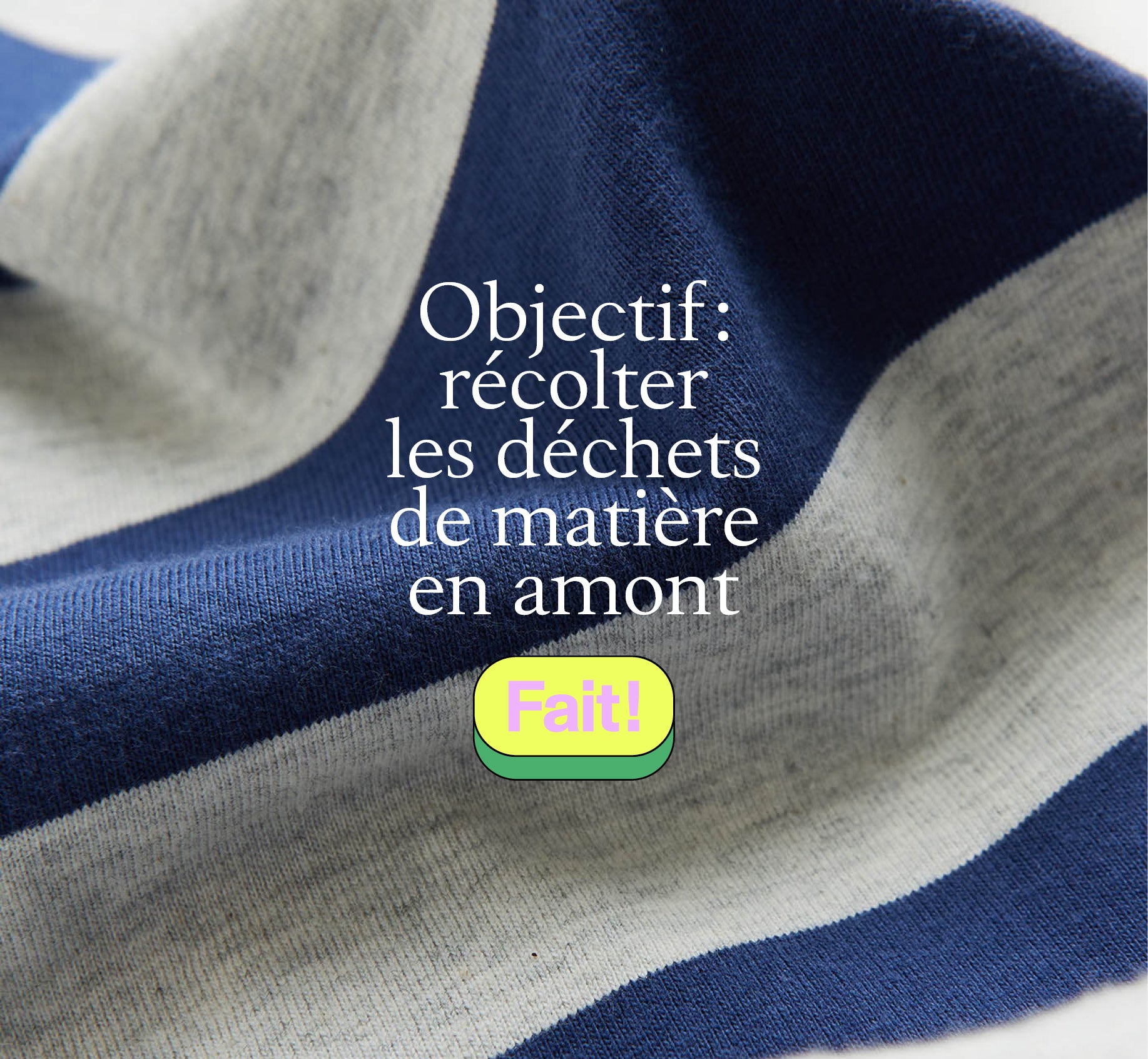We must collect waste from each part of the production chain, so that it is not lost and reintegrated into our chain. The processes are different at each of our partners. Some are already very committed and have developed their own collection and recycling system. This is the case, for example, of Tony's weaving factory. With other partners, we work with them to set up collection and think about the most efficient and useful way to reuse this waste.