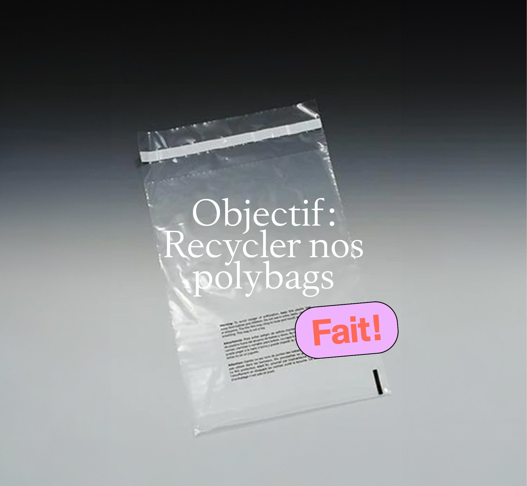The single-material composition of our polybags facilitates their recycling and we have real visibility on this since, in partnership with our logistician, we have set up a local recycling chain in a Work Service and Assistance Establishment (ESAT). )* specialized near our logistician located in Angers. Here's how it works: before shipping your clothes, our logistician removes them from the polybags in which they are contained and approximately every two months, he hands them over to the ESAT which takes care of packaging them in plastic bales then to send them for recycling (always nearby) to be transformed into new polybags. This transparent and local circuit allows us to control and ensure that our polybags are really recycled.