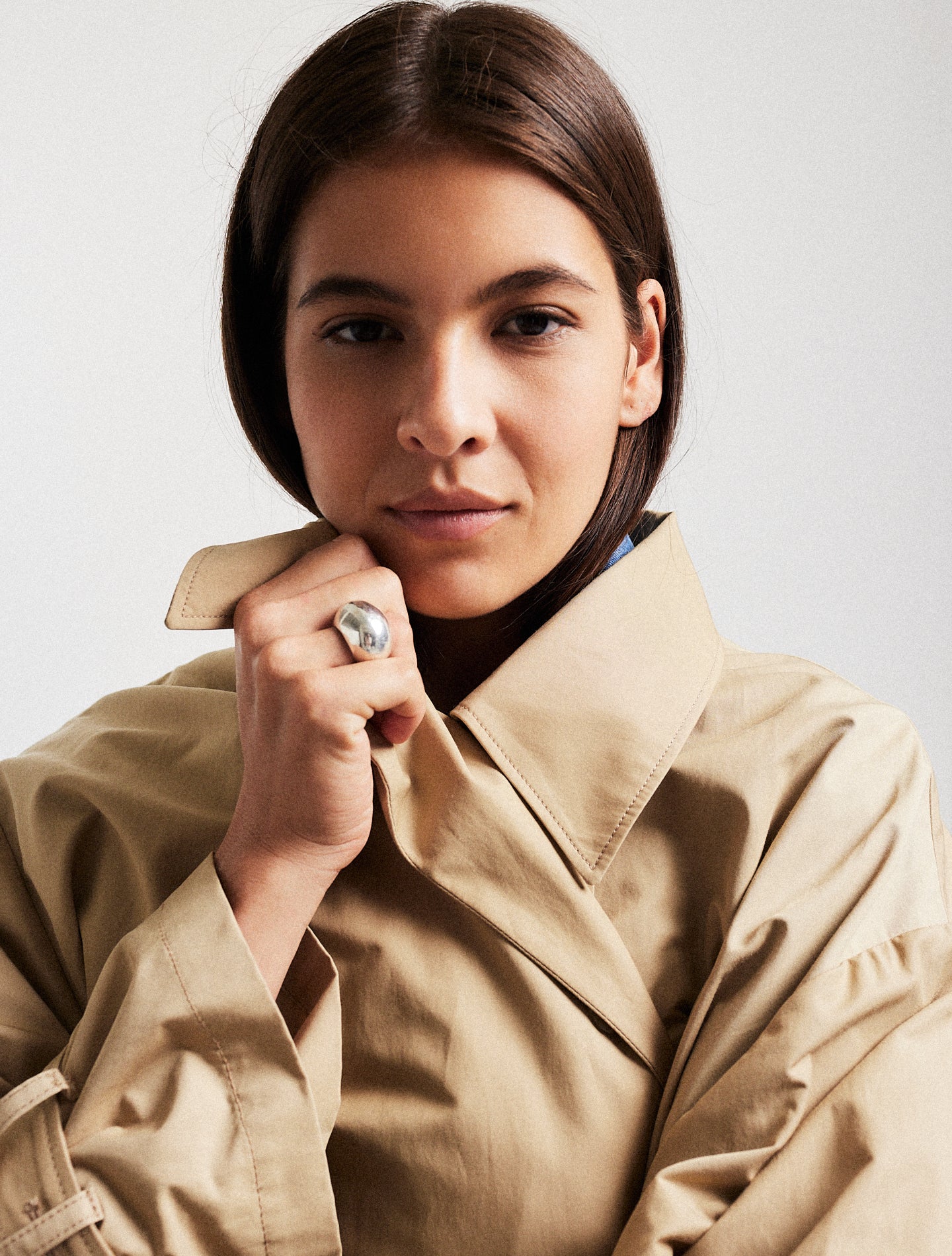 As for the new trench coats, we can say that Gaby is a great option from a footprint and sustainability point of view: for the weaving and manufacturing of the Gaby material we have chosen responsible and high-quality materials, we have carried out very thorough traceability of each step, favored partners using less energy-intensive and low-pollution methods, and created a design that we will love for several years.
