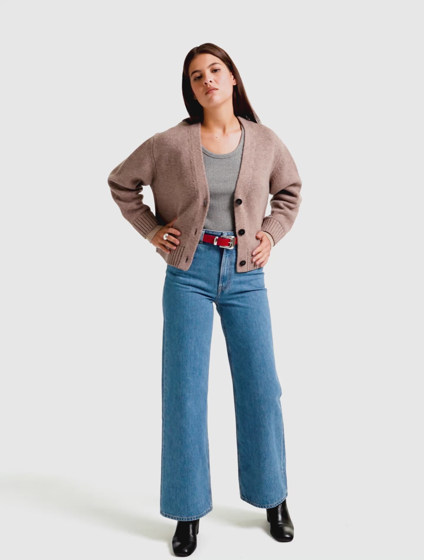 Introducing the first Patine cardigan, made from 100% recycled Wooly wool . It's boxy, a perfectly flattering length to wear with high-waisted jeans and all your skirts and dresses. It's neither too stiff nor too soft, with just enough drape to keep you cozy and comfortable everywhere—but a cozy one with good manners, you see, it holds its shape well.