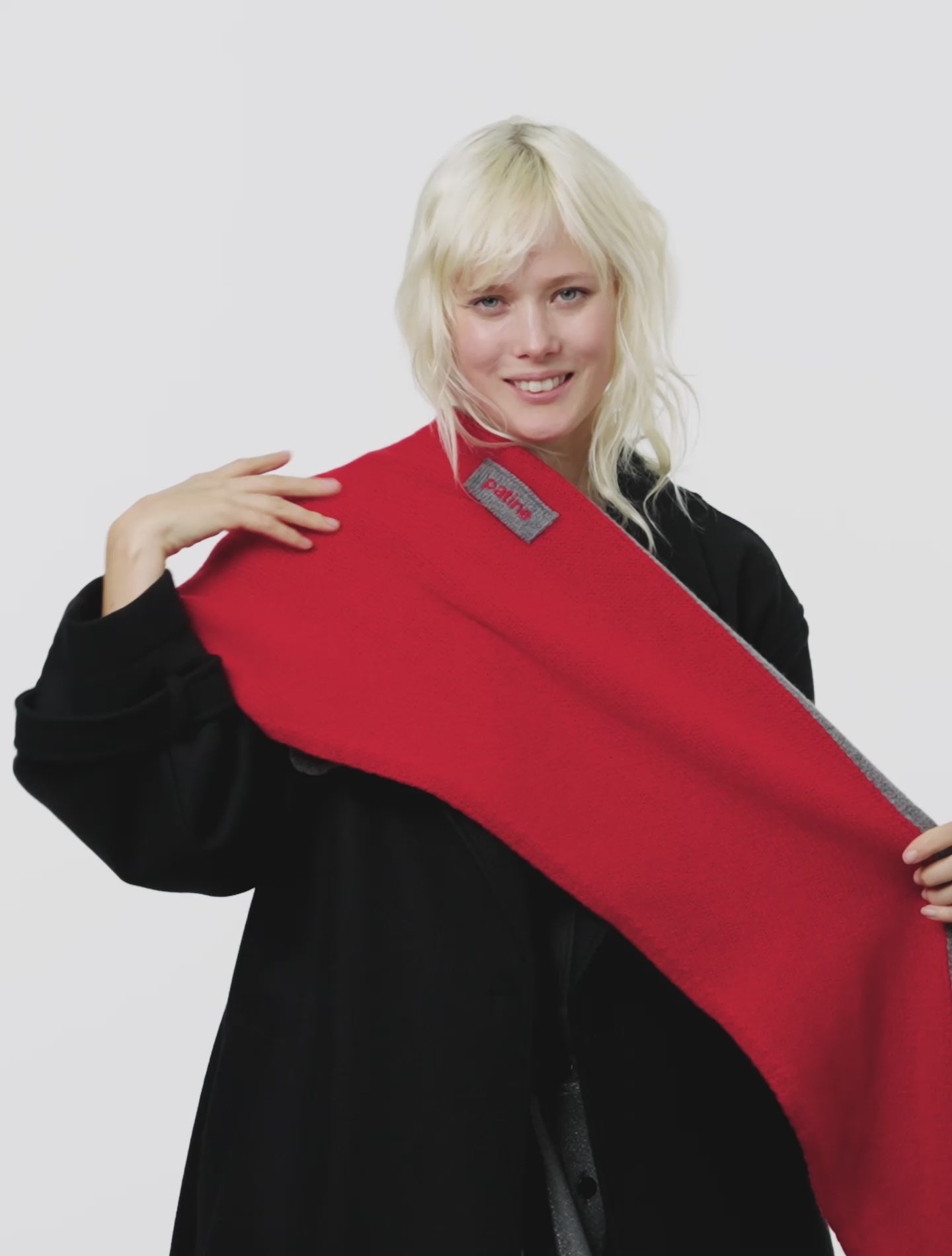 Ceci est un bandana, mais un bandana géant 100% pure laine ultradouce Wooly, tricoté en Italie. Suffisamment grand pour s’y enrouler dehors et dedans. Comme nos pulls il est tricoté dans la laine 100% mérinos qui a la particularité d’être complètement régénérée, ce qui signifie recyclée.